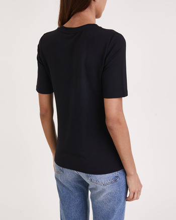 Beline Trousers from Stylein. Trendy tailored trousers designed with flared legs. The trousers are made from luxurious crepe fabric. They feature a zip fly, zipper, and hook closure. Designed with a wide elastic waistband for added comfort. The design includes slanted side pockets and crease lines that create a flattering silhouette.