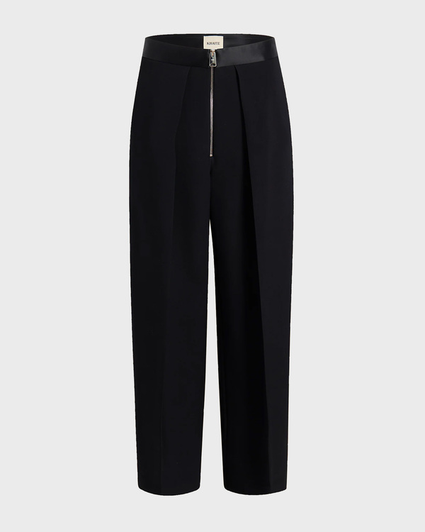 Roth coat from Khaite. An elegant, tailored trench coat with a relaxed fit. The coat features both a pointed collar and shawl lapels for a sleek look. Use the detachable belt to cinch the waist.