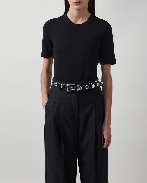 Skirt Pacifica from Isabel Marant Étoile. Trendy cotton skirt in mini length in a dark gray color. The skirt is adorned with ruffles and smocking, adding a touch of charm and texture to the design. It can be paired with various tops, from casual t-shirts to more festive blouses, offering many styling possibilities.