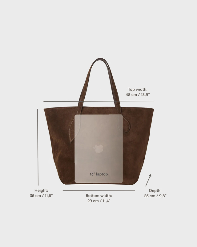 Bag Sprout Tote from Liffner. Elegant, spacious, and timeless – this dark brown suede bag is designed for the style-conscious. With its softly structured shape and generous space, it’s the perfect companion from work to weekend. Easy to carry, impossible to resist.