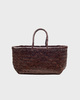 Bamboo Triple Jump Small Bag from Dragon Diffusion. A stylish handwoven basket bag in buffalo leather, featuring a distinctive chevron pattern and open top – blending traditional craftsmanship with timeless design. Each bag is unique and adorned with a St. Christopher medal as a mark of authenticity.