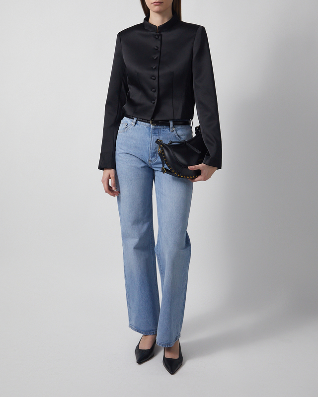 Jacket Suede Zip from NEUW. A cropped jacket with a minimalist silhouette in luxurious suede. The design features clean, tailored lines and subtle texture that highlight a soft, feminine shape. The jacket has a classic collar and a metal zipper running from the hem to the collar. Two discreet side pockets complete the sleek, refined look.