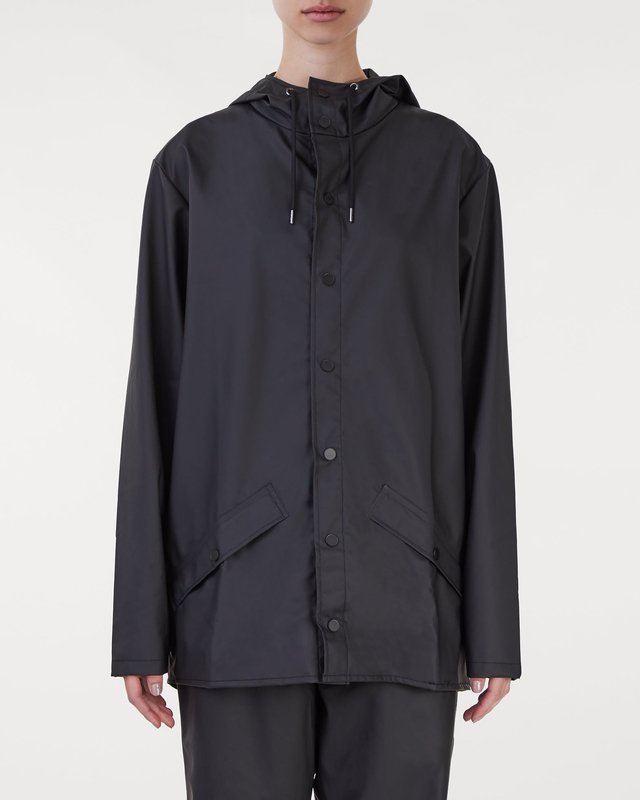 Rain jacket from Rains. A stylish unisex rain jacket with ventilation holes and a hood. The rain jacket has a straight shape with a minimal silhouette, soft surface and nice fit.