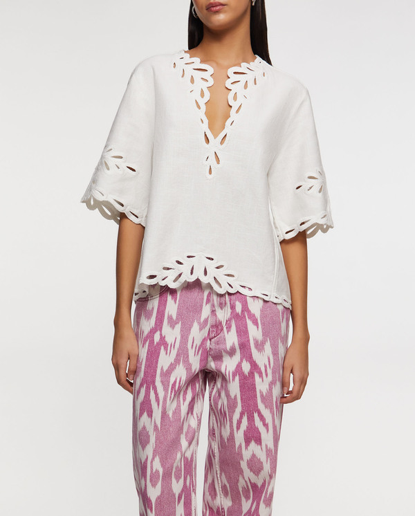 Jeans Joanny from Isabel Marant. These jeans are a sleek and trendy choice for any occasion. In a beautiful pink shade, they combine elegance with comfort, making them perfect for both everyday wear and special occasions. With their modern fit and sophisticated details, they add a fresh and feminine touch to your wardrobe.
