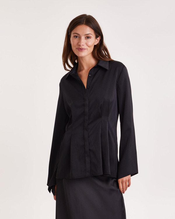 Skirt Liz Denim from Wakakuu Icons. Designed in a midi length, this denim skirt offers a balanced blend of style and comfort. Crafted with a slim fit and thoughtful details. Equipped with belt loops, slant hip pockets, back pockets, and a front high slit. The Liz skirt is versatile and can be paired with everything from a casual t-shirt to an elegant blouse. The skirt comes in a classic blue and black denim wash.