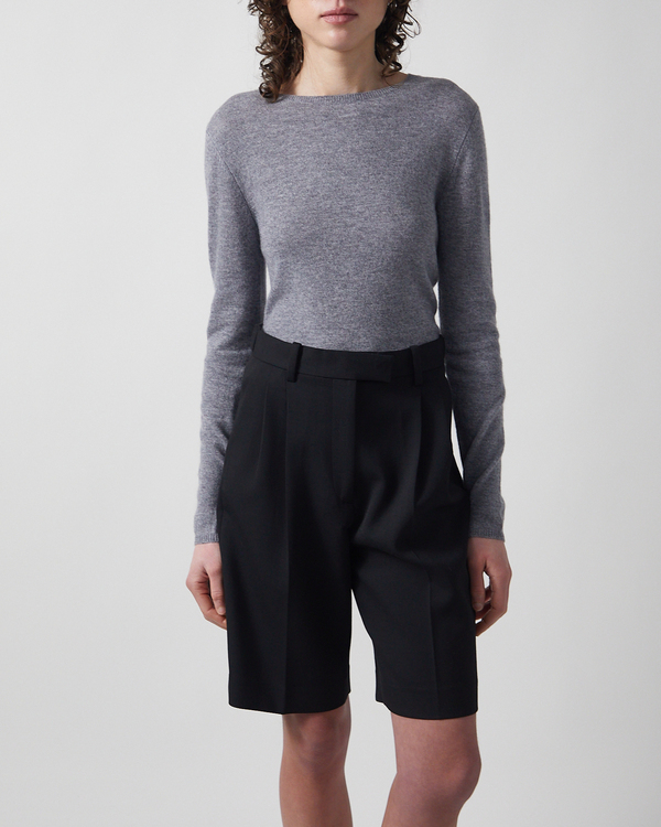 Shorts Bruna from Almada Label. Tailored shorts designed with a high-rise waist and a softly structured silhouette that falls elegantly just above the knee. Front pleats add refined volume, while belt loops and a clean waistband enhance the polished finish.