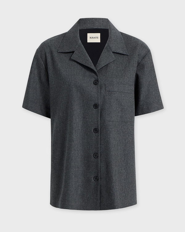 August Pant from Khaite. Designed for a relaxed yet tapered fit, these trousers are crafted from wool and cashmere shirting chosen for its beautiful drape. The silhouette combines a low rise with slightly bowed legs, inspired by vintage men’s jeans, and is finished with a signature button.