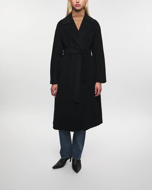 Coat Cles from Max Mara. Elegant coat made of a luxurious combination of cashmere, silk, and wool. Unlined with a flared silhouette, lapel collar, long kimono sleeves, and inset side pockets. The matching belt allows you to accentuate the waist and create a flattering silhouette.