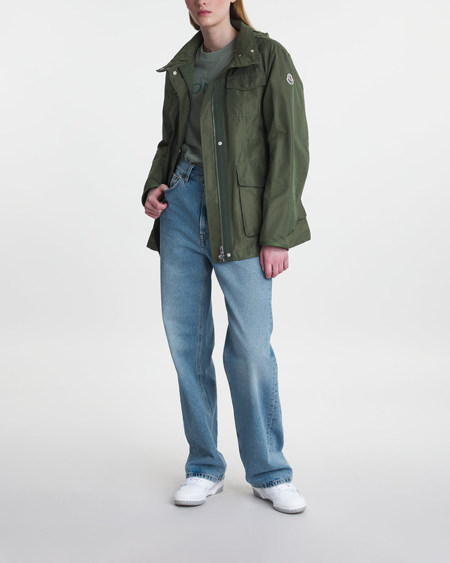 Jacket Ilo Field Giubbotto from Moncler. Trendy jacket made of taffeta. Designed with an adjustable drawstring at the waist and spacious pockets with button closure at the front. The jacket has a hidden hood that fits into the collar of the jacket. Detailed with the brand's iconic logo on one sleeve. Closes with a zipper.