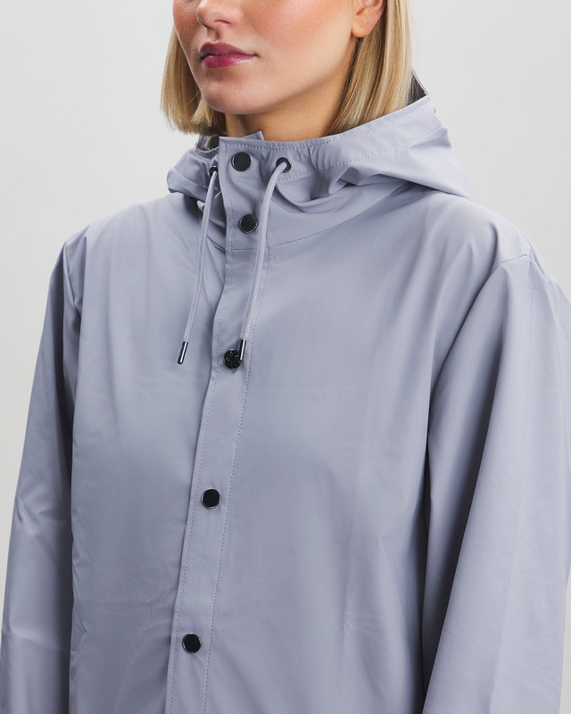 Jacket Long W3 from Rains. This rain jacket is a longer version of Rains' most classic jacket. This timeless unisex rain jacket combines versatile functionality with a minimal silhouette. The garment features double-sealed diagonal flap pockets and adjustable cuffs. The look is completed with snap button closure. Made from the brand's strong and durable PU signature fabric that is both waterproof and windproof.