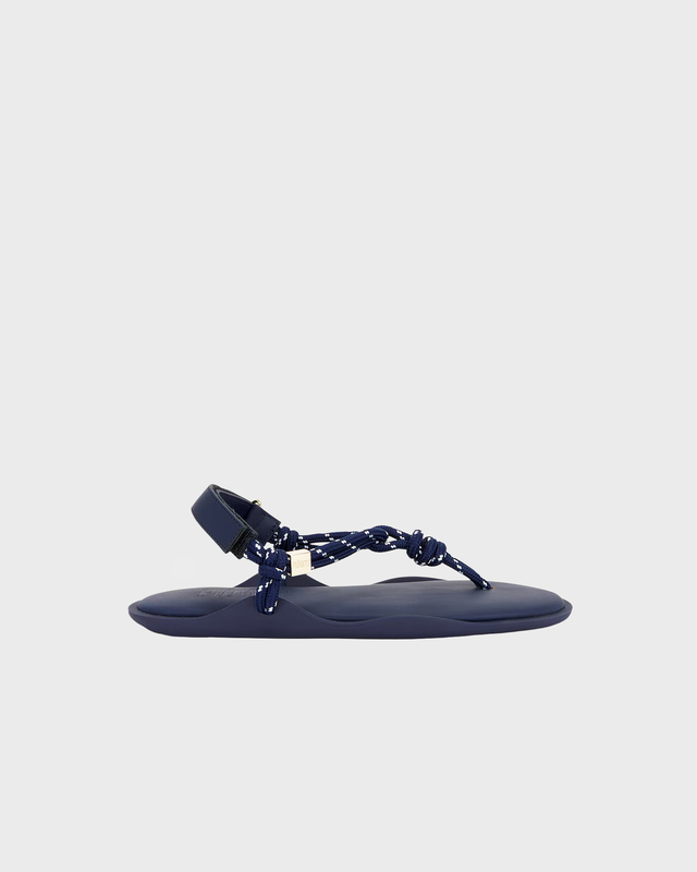 Sandaler Fló from FLÒWZE. En minimalistisk flip-flop-inspirert sandal med en overdel i knyttet snor og subtile metalldetaljer. En justerbar slingback med borrelås sikrer passformen. En polstret fotseng i skinn og en yttersåle i resirkulert gummi gir komfort og godt grep hele dagen. Laget i Italia med gjennomtenkte materialer for et uanstrengt, moderne uttrykk.