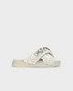 Sandal Woven Stones by Inuikii. Trendy slip-in sandals in a crocheted design. The sandals have decorative stones in different shades and sizes at the front. A slightly raised sole.