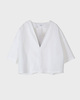 Blus Julianna från Stylein. Tillverkad i krispig bomull med en voluminös, kort silhuett. Designad med en djup V-ringning, korta vida ärmar och en subtil ton-i-ton broderad Stylein-logga vid fållen. Produkten tillhör kategorin W Sustain eftersom den är tillverkad av hållbara material.
