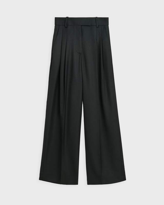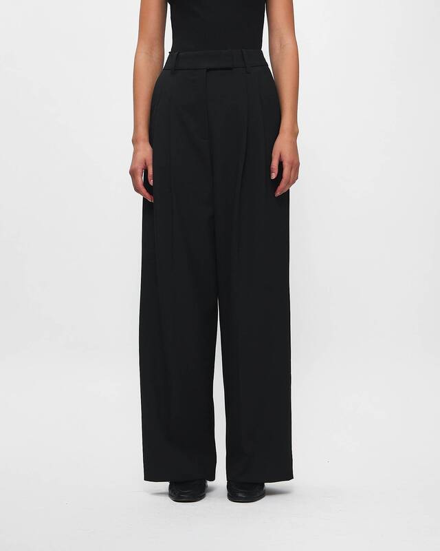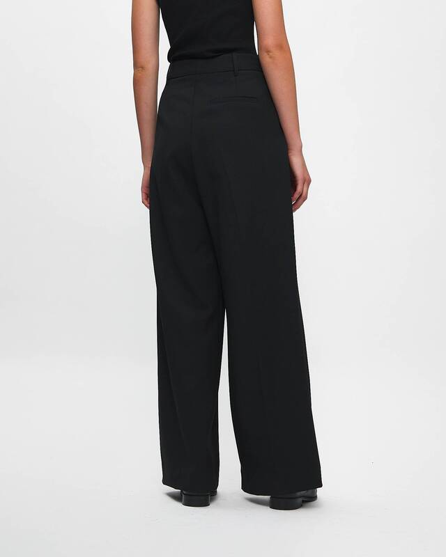 Byxa Cymbaria från Malene Birger. Trendiga kostymbyxor med vida ben. Byxorna har en hög midja och dekorativa pressveck. Hällor i linningen och diskreta fickor i sidorna. Dekorativ ficka baktill.