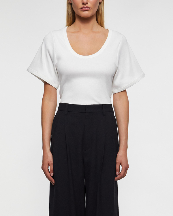 Byxor Cymbaria från By Malene Birger. Trendiga kostymbyxor med vida ben. Byxorna har en hög midja och dekorativa pressveck. Hällor i linningen och diskreta fickor i sidorna. Dekorativ ficka baktill. Matcha Cymbaria byxorna med Porter kavajen för en tidlös och elegant look.