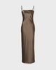 Klänning Roxie från Wakakuu Icons. Denna eleganta klänning visar en minimalistisk design en tidlös känsla. Maxilängdssiluetten kompletteras av tunna, justerbara axelband som möjliggör en anpassad och bekväm passform. Klänningen har en rak halsringning och en slits nedtill på baksidan. Höj din garderob med Roxie Dress från Wakakuu Icons, ett perfekt val för de som söker ett chic och mångsidigt plagg som fungerar till både fest och vardag.