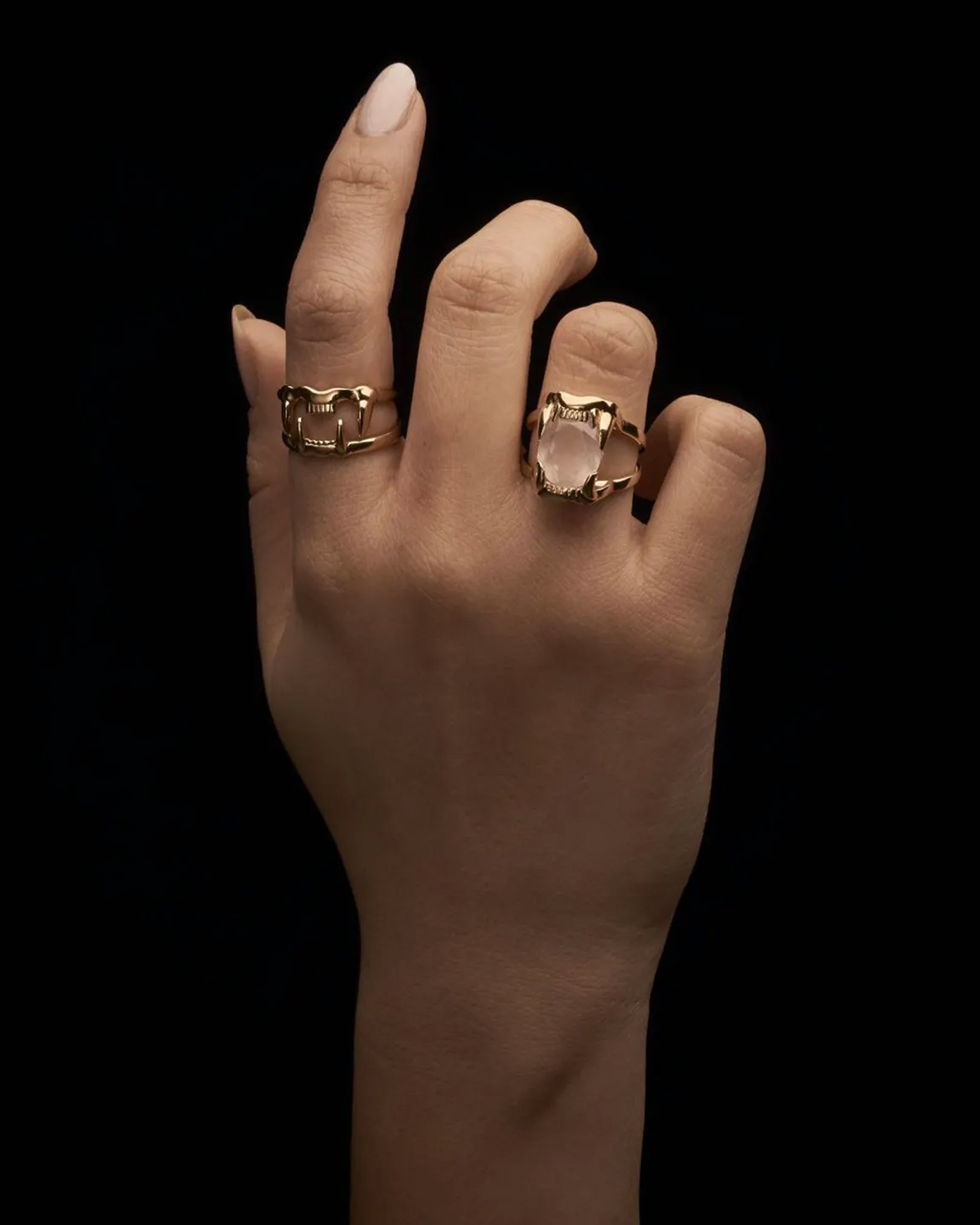 Ring Jaw Upper från Maria Nilsdotter. Guldpläterad silverring där detta är ovandelen i ett tvådelat set. Matchas med Jaw Lower Ring för en komplett look.