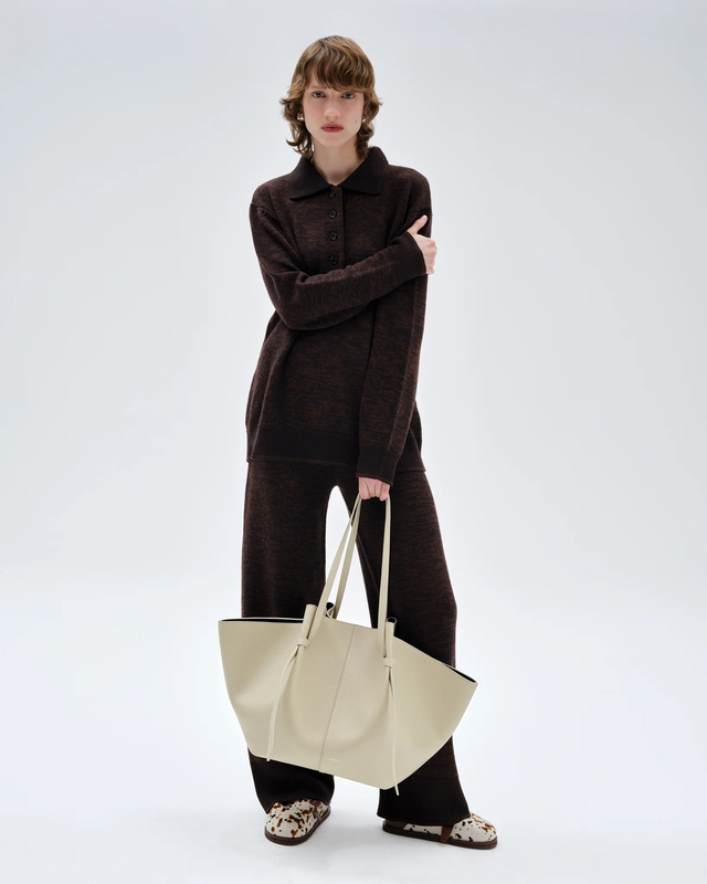 Väska XL Mochi Pebble Grain Leather från Yuzefi. XL Mochi-väskan är en rymlig och modern vardagsväska. Den rymmer alla dina viktigaste saker, även en 14” laptop, och har en justerbar knutrem samt magnetstängning. Handgjord i Spanien av 100% läder ger den en mjukt strukturerad och stilren känsla i din vardag. Justerbara remmar med signaturknut gör att du kan ställa in längden som du önskar. Mått: Övre bredd 56 cm, nedre bredd 13 cm, längd nedtill 30 cm, höjd utan handtag 35 cm.