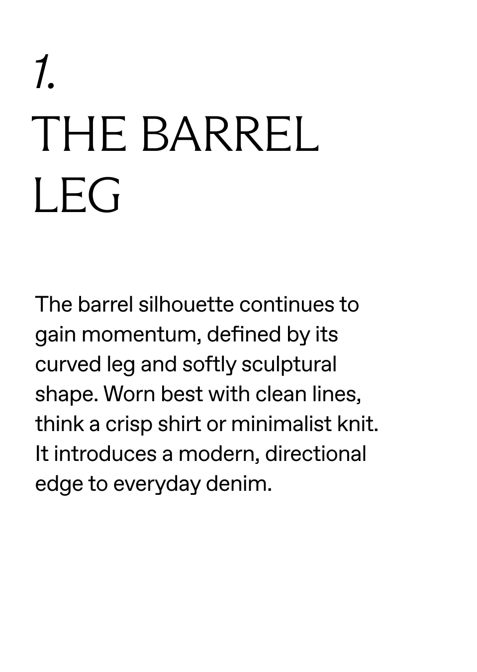 On the Spring/Summer runways, clean lines and confident structure take precedence — from sculptural barrels to deep indigo straight-legs and crisp white denim, all defined by elevated simplicity.